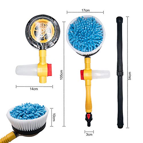 - ★دوران تلقائي عالي الضغط: يدخل تدفق المياه إلى أنبوب المياه، ثم يدفع الضغط ويجعل رأس فرشاة السيارة يدور تلقائيًا، مما يجعل التنظيف أفضل، لا حاجة إلى كهرباء، موفرة للطاقة، ومريحة في الاستخدام.