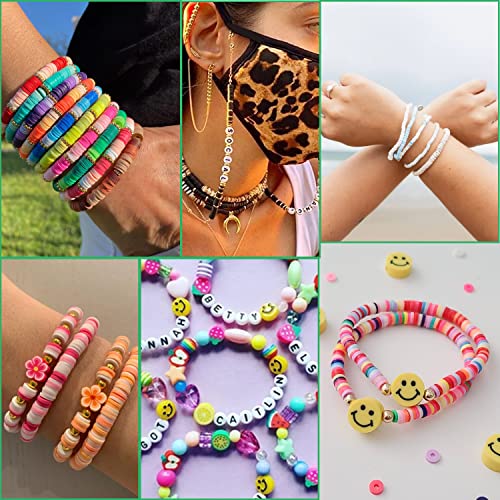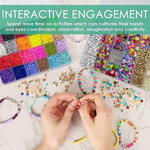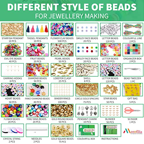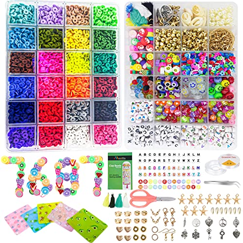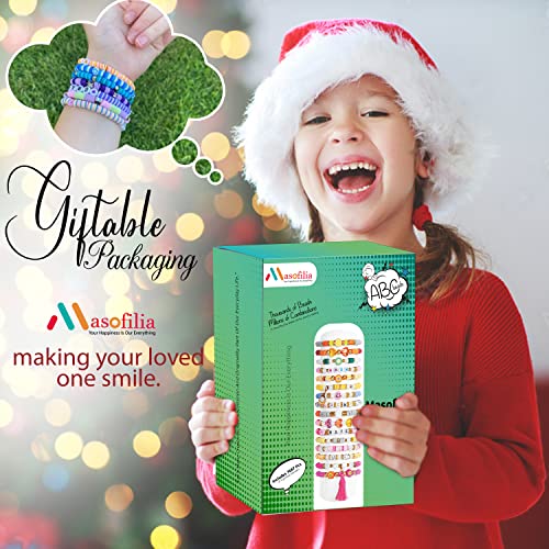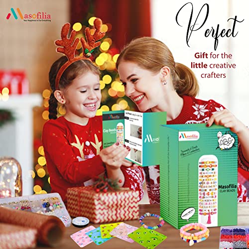 Masofilia - مجموعة خرز صنع الاساور من الطين لؤلؤ وخرز حروف لصنع المجوهرات - مع طين بوليمر ملون للاساور ومستلزمات اليدوية 7636 قطعة