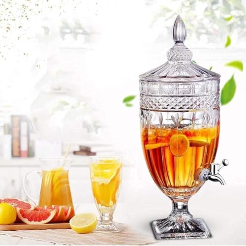 Generic - موزع مرطبان ماسون للمشروبات الباردة والتخلص من السموم من الزجاج الشفاف، موزع بحنفية مع غطاء فولاذ سعة 5 لتر
