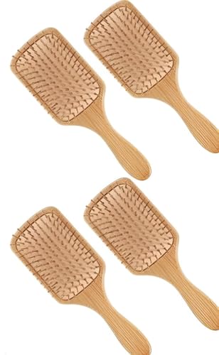 Generic - مشط تدليك - مقبض مريح من الخيزران مع شعيرات متينة تحفز فروة الرأس بلطف وتفك تشابك العقد وتوفر تجربة تهذيب مهدئة للبالغين والاطفال (4 قطع)