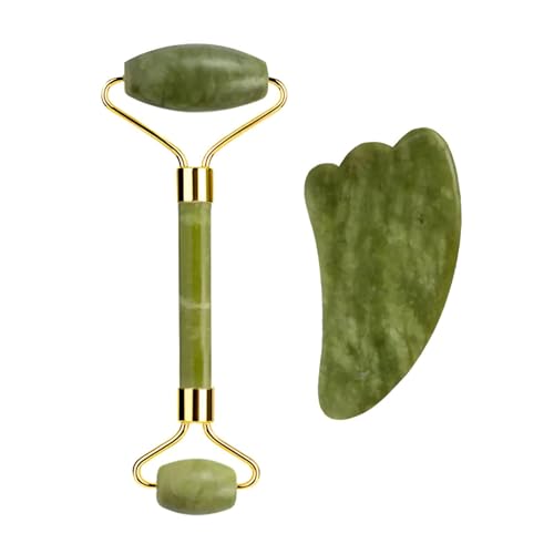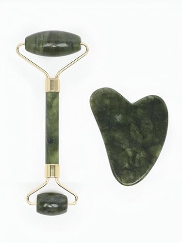 Daga - أداة تدليك – مدلك للوجه مضاد لعلامات التقدّم في السن، مزوّد بحجر اليشم الطبيعي وأداة غوا شا لتجديد البشرة والاسترخاء