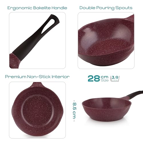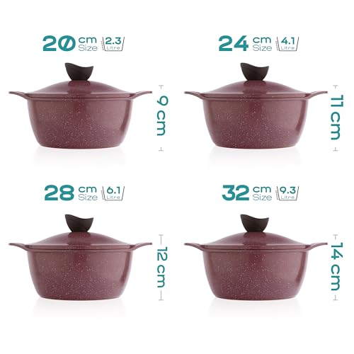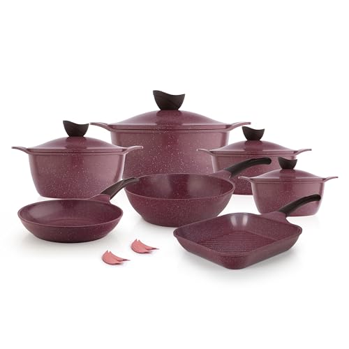 Master El-Zenouki - طقم جرانيت 15 قطعة حلة 20-24 - 28-32 - طاسة قلي 24 - شواية 28 - مقلاة عميقة + 4 حامل الموديل: ويف اللون: بورغندي