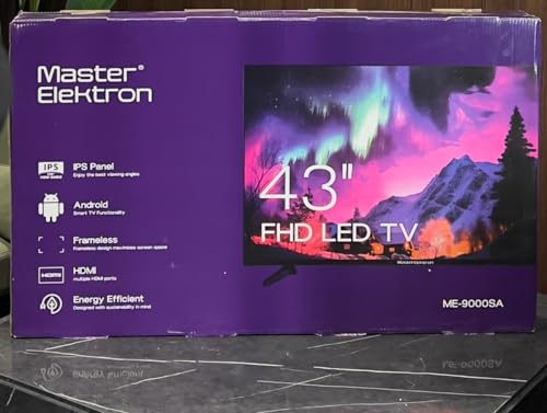 Master Elektron - شاشة ذكية 43 بوصة (أندرويد 14) بدون إطار وغطاء معدن من ماستر اليكترون، موديل ME-9000