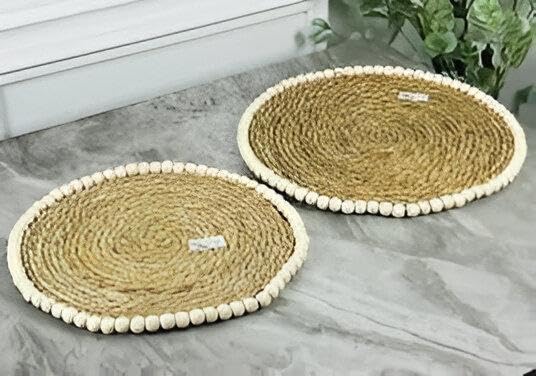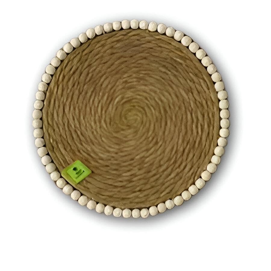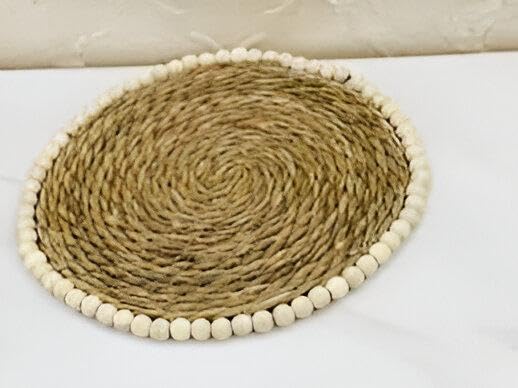 - مزينة بشكل جميل بخرز خشبي حول الحافة، توفر قاعدة الأكواب لمسة فنية فريدة تحول قطعة منزلية بسيطة إلى قطعة أنيقة من فن الطاولة تستحق العرض.
