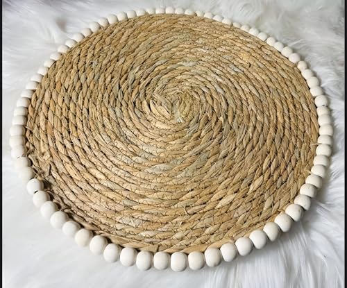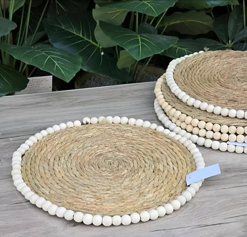 Generic - قاعدة اكواب فنية منسوجة مع خرز خشبي ساحر، ملحق متعدد الاغراض لتقديم الطعام، ديكور لاعدادات الطاولة، مقاومة للانزلاق، قابلة للغسل، متينة، استخدام انيق