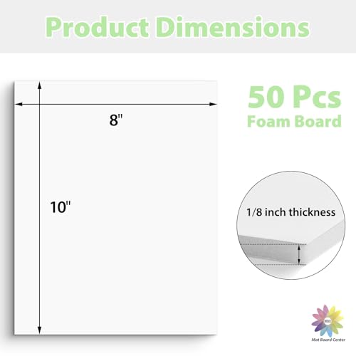 MBC MAT BOARD CENTER - لوح تثبيت من مات بورد سنتر، عبوة من 50 لوح دعم من الاسفنج، لوح تثبيت (8 × 10 - لوح فوم، ابيض)، من ام بي سي مات بورد سنتر
