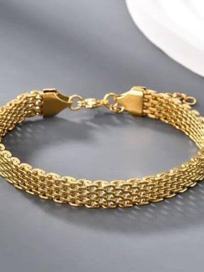 Generic - "انسيال حصيرة - سوار بسمارك من الفولاذ المقاوم للصدأ (ستانلس ستيل مضفر بنمط هيرينغبون