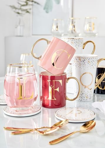 Matalan - كوب زجاجي شفاف مطبوع عليه B باللون الذهبي من ماتالان، ارتفاع 12.5 سم × قطر 7 سم