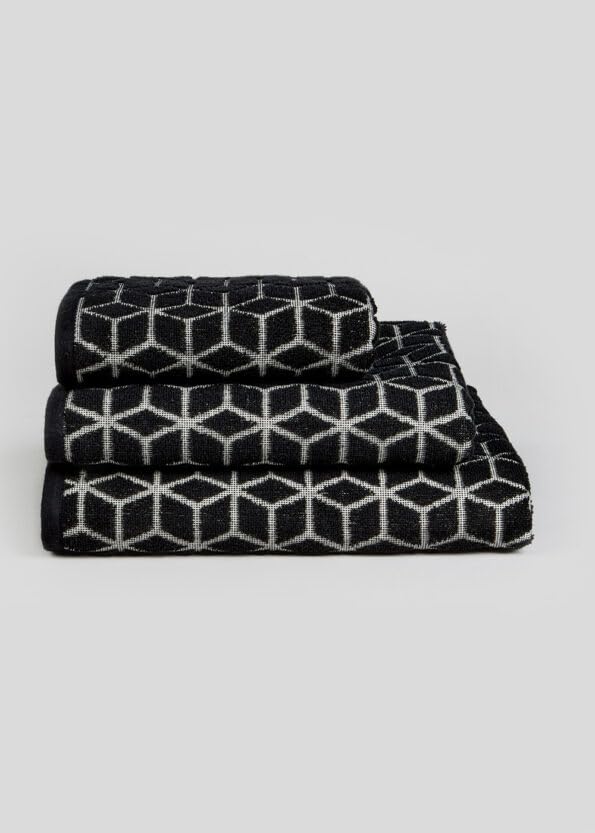 Matalan - فوط يد من القطن بطبعة بتصميم هندسي ماتالان مقاس 50×80 سم لون أسود 2714401 واحد