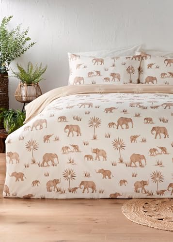 Matalan - طقم غطاء لحاف قابل للاستخدام على الوجهين مزين بنقشة فيل من ماتلان فردي رمادي بوليستر مطبوع بصور حيوانات عدد الخيوط: 200