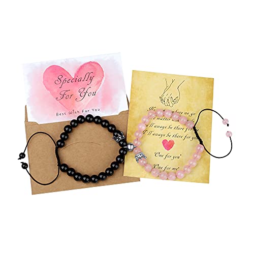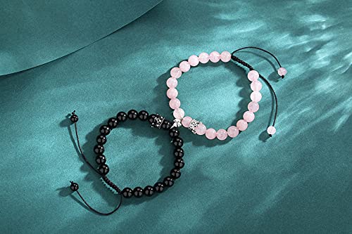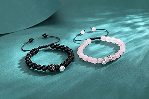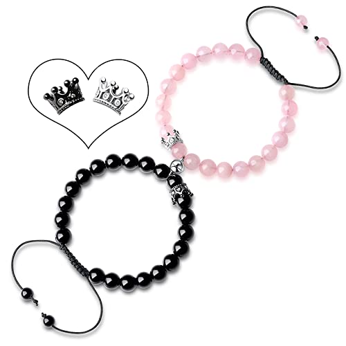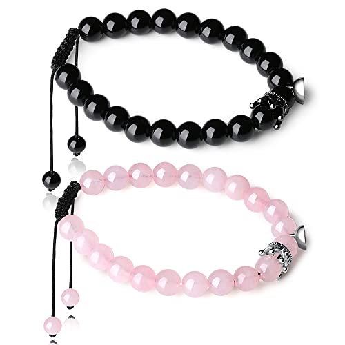 generic - اساور متطابقة للزوجين، اساور مغناطيسية روز كوارتز وكريستال العقيق الاسود وخرز العقيق الاسود والعلاقات المتبادلة، اساور متطابقة للنساء والرجال من قطعتين، هدايا التخرج، حجر كريستال، غير معروف