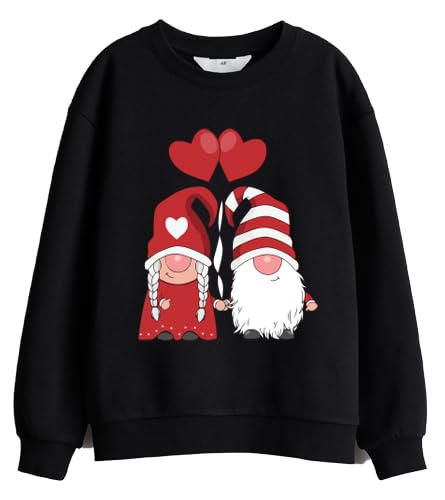Generic - سويت شيرت بتصميم مطابق للكريسماس جنوم، مزيج من القطن الاسود، تصميم بطابع عطلة مع قبعات سانتا وقلوب مقاس (9-12 سنة)