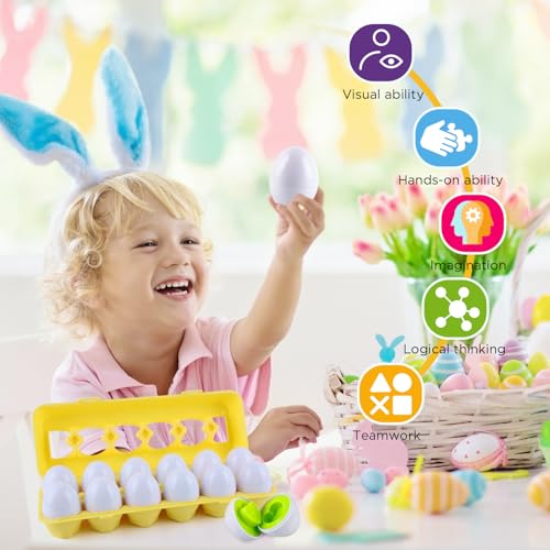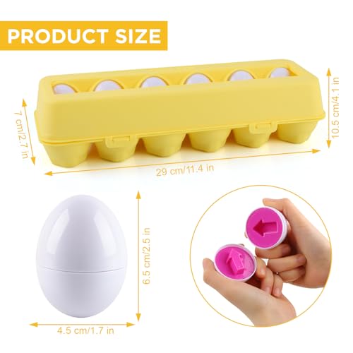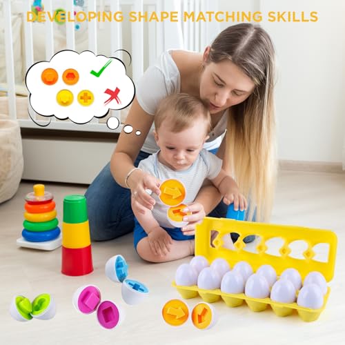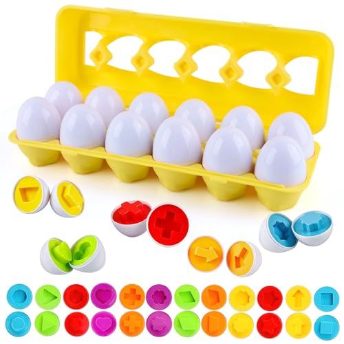 dellyy - بيض احجية متطابق للاطفال الصغار، 12 قطعة من بيض التعرف على الالوان والاشكال للاطفال بعمر 1 و2 و3 سنوات، هدايا مطابقة للتعلم المبكر والمهارات الحركية الدقيقة (رمز)