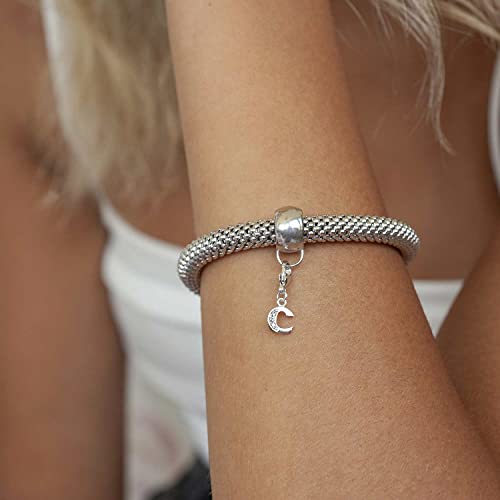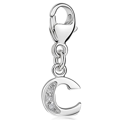 MATERIA by Matthias Wagner - دلاية فضة استرليني 925 على شكل حرف C مطرزة بـ3 فصوص من حجر زركونيا المكعب مناسبة لسوار/سلسلة من ماتيريا #C53, زركونيا مكعب