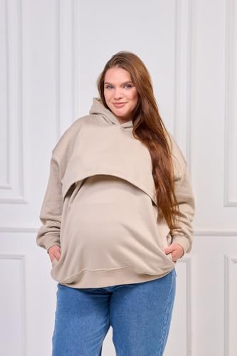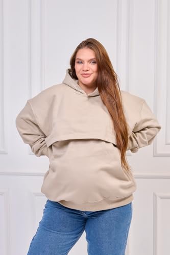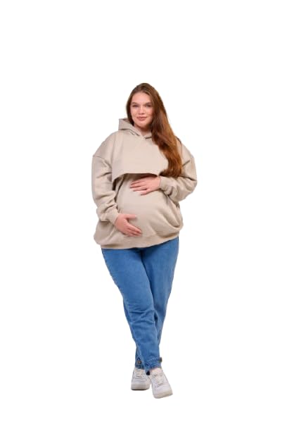 Generic - هودي مبطن شتوي للحمل والرضاعة – تصميم عملي بدفء ناعم وسحّاب مخصص للرضاعة – راحة وأناقة للأم العصرية (begie, XL)