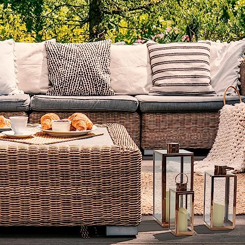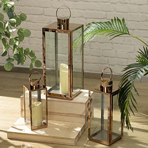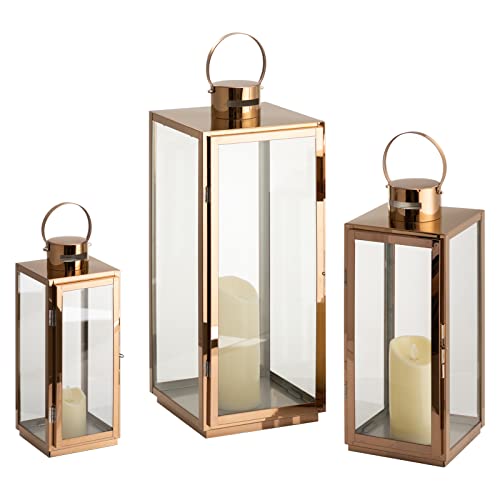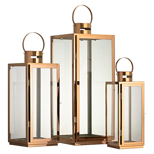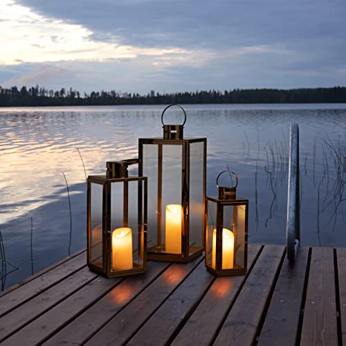 MATICO - حامل شموع من الفولاذ على شكل فانوس معلق ديكور للمهرجانات والاحتفالات والمنزل والاستخدام في الأماكن الداخلية والخارجية من ماتيكو، ذهبي، 3 قطع