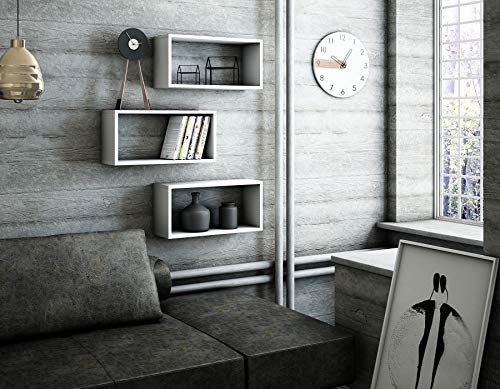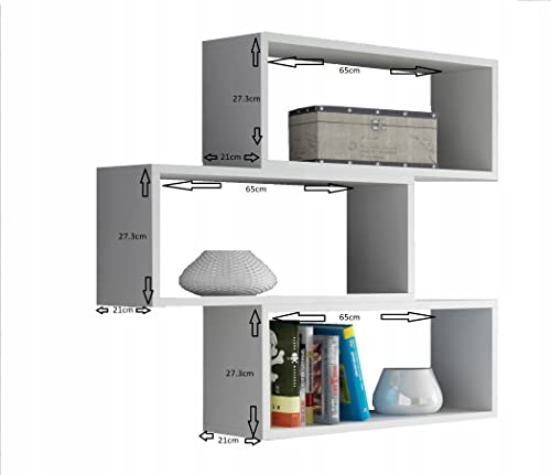 MATKAM - حامل حائط بتصميم عصري من ماتكام ادم | 3 قطع ريجال/اتش/تي 31 × 65 × 21 سم | حامل خشبي 18 ملم | في مجموعة متنوعة من الساعات | بحد اقصى تحمل 20 كغم (WeiÃ؟)