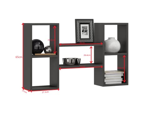 MATKAM - رف حائط بولون بمظهر حديث من ماتكام | العرض × الارتفاع × العمق 92 × 65 × 21 سم | سمك الخشب 18 ملم | متوفر بتصميمات مختلفة | (رمادي رصاصي)