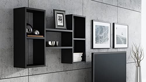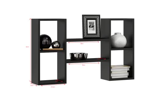 MATKAM - مكتبة معلقة متعددة الأرفف، 92 × 65 × 21 سم، أسود