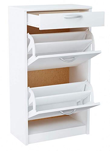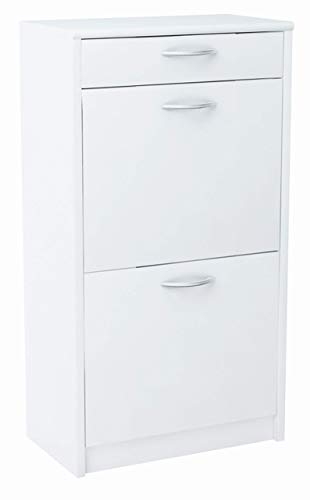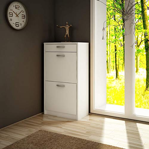MATKAM - خزانة أحذية من ماتكام، Schuhschrank 2D1S in moderner Optik/B 50xH 92xT 28 cm/laminierte Möbelplatte 16 mm/mit Rückwand/2 ausklappbare Schuhablagen/1 Schublade für zusätzlichen Stauraum(Weiß)