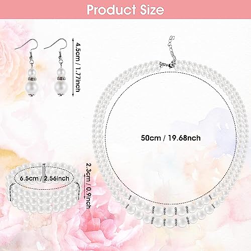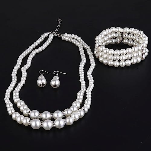 MATTE MAISA - طقم مجوهرات من اللؤلؤ الصناعي، طقم مكون من سلسلة وحلق من اللؤلؤ من عشرينيات القرن الماضي، سلسلة وحلق بريمة، إكسسوارات وهدية للزفاف وعيد الميلاد للنساء من مات مايسا