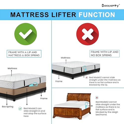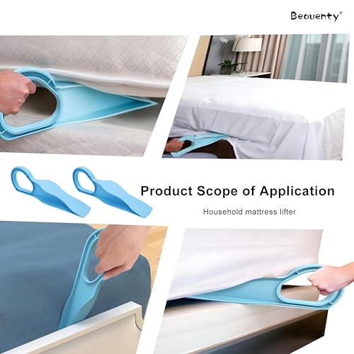 - قم بتغيير الأغطية الموجودة أسفل المراتب الثقيلة بسهولة باستخدام هذا المنتج المبتكر! فهو يزيل عناء رفع ومناورة الأغطية الضخمة، مما يجعل المهمة سريعة وسهلة لأي شخص.