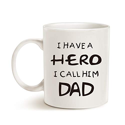 MAUAG - كوب قهوة مطبوع عليه عبارة «I Have a Hero I Call Him Dad» من ماواج، هدية مضحكة لعيد الاب وعيد ميلاد الاب، ابيض 11 اونصة
