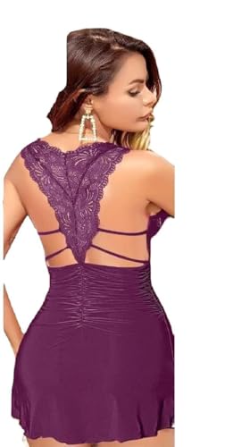 Generic - قميص نوم بلون موف مزين بالدانتيل من الخلف - للنساء