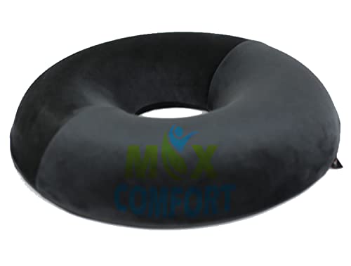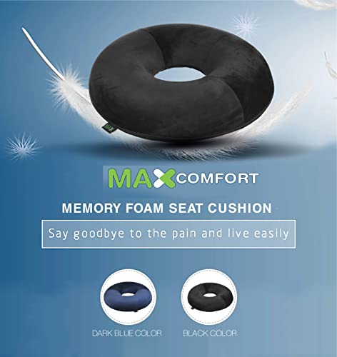 Max Comfort - مخدة مقعد للبواسير من ماكس كومفورت، مصنوعة إسفنج ميموري فوم الأمريكي وآلام أسفل الظهر، شكل دائري لكرسي المكتب والمنزل والسيارة، أسود