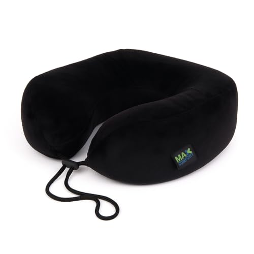 Max Comfort - وسادة رقبة طبية حديثة للسفر – ميموري فوم أمريكي عالي الجودة لتخفيف آلام الرقبة والفقرات أثناء الطيران والرحلات – من ماكس كومفورت (أسود)