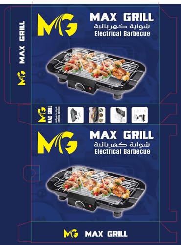 Generic - MAX GRILL شواية كهربائية محمولة، مقبض حراري، شبك مقاوم للالتصاق، مناسبة للمنزل والحفلات، لون أسود 2000 وات