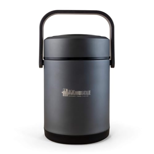Max Muscle - لانش بوكس من الفولاذ المقاوم للصدأ معزولة بتقنية التفريغ الهوائي من ماكس ماسل، 2 لتر، أسود