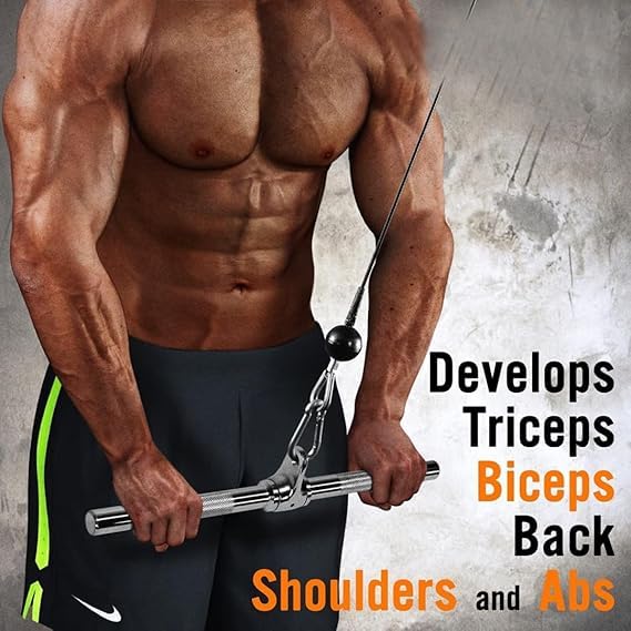 - Max Strith Straight X Bar with Pull Down Handle Biceps Exercise Accessory Cable for Home Gym Non Slip Hard Steel Alloy Silver