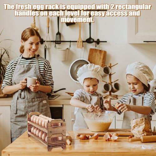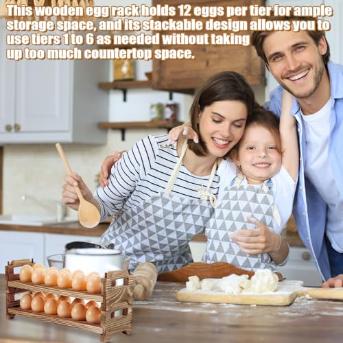 Maxcheck - ماكس تشيك حامل بيض خشبي من 6 طبقات قابل للتكديس لتخزين ما يصل الى 72 بيضة رف مع مقابض للثلاجة وصينية منظم للمطبخ