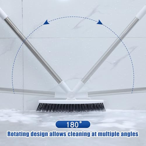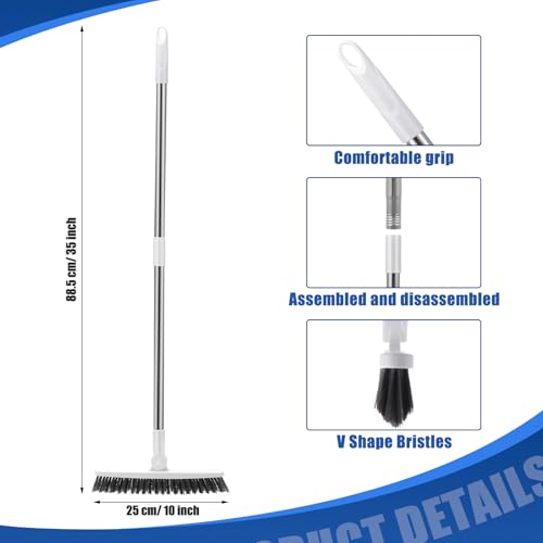 - مقبض طويل بدون مجهود: توفر فرشاة تنظيف الأرضيات ذات المقبض الطويل طولًا إجماليًا مثيرًا للإعجاب يبلغ 35 انش، مما يجعلها مثالية للأماكن التي يصعب الوصول إليها في الحمامات والمطابخ والباحات والمزيد؛ نظف كل زاوية بسهولة وراحة، مما يقلل من الحاجة إلى الانحناء أو التمدد
