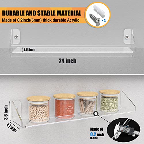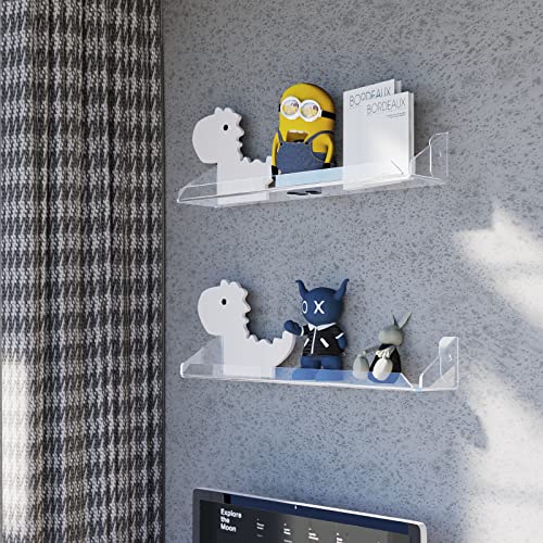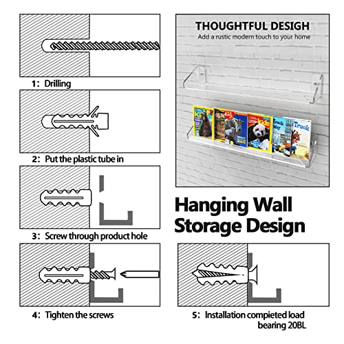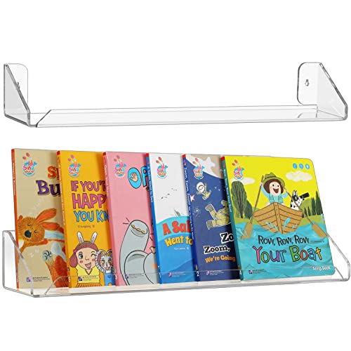 MaxGear - رفوف معلقة من الاكريليك مقاس 61 سم ماكس جير عبوة 2 رف كتب شفاف يثبت على الحائط لغرفة الأطفال والحضانة تخزين طويل الحواف ومنظم عرض معلق للكتب والمجلات