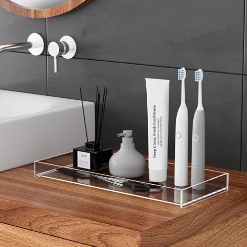 MaxGear - صينية شفافة لتخزين وتنظيم ادوات زينة وعطور وصابون وفوط ومناديل والشموع والنبات للحمام والبانيوهات من الاكريليك ماكس جير 11.8 × 5× 1.2 بوصة مستطيلي