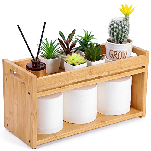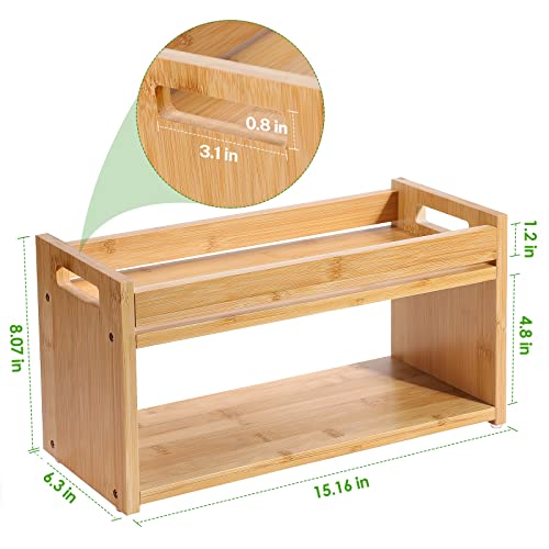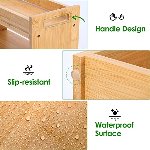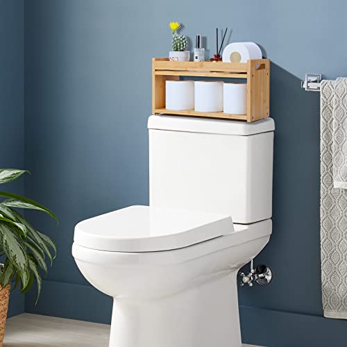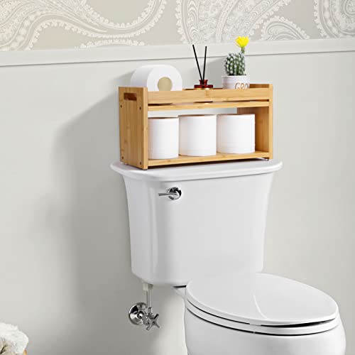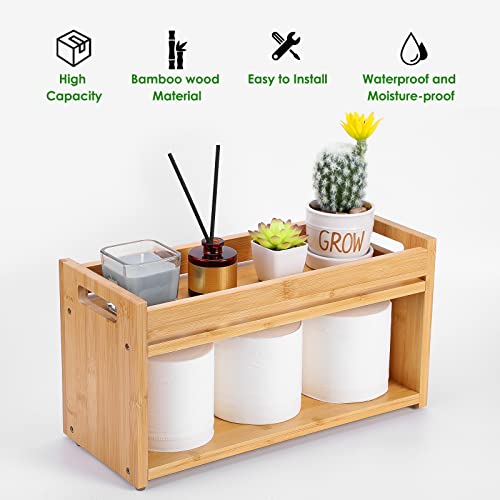 MaxGear - ماكس جير صندوق ديكور من الخيزران للحمام من طبقتين مع مقابض، حامل ورق تواليت خشبي، منظم حمام خشبي، سلة ديكور للجزء الخلفي من المرحاض للحمام