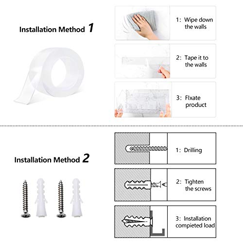 - 【طريقتان للتركيب】الثقب: تحتاج إلى حفر ثقب في الحائط للتركيب، والتحكم في موضع الثقوب في خط أفقي في الحائط. بدون ثقب: نظف السطح الذي تنوي لصق الشريط. اضغط مع الاستمرار على الشريط بإحكام على السطح.