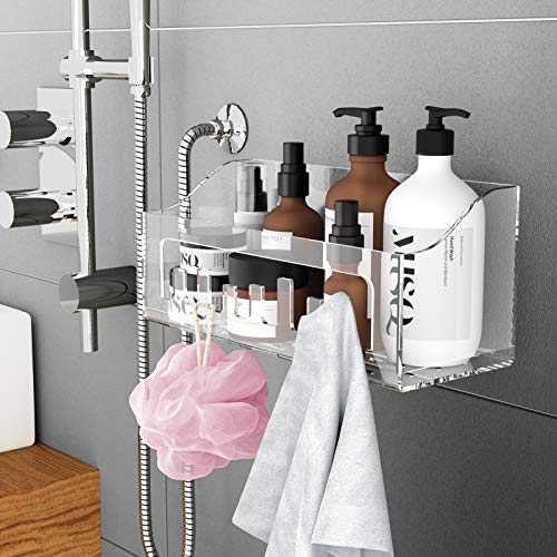 MaxGear - ماكس جير منظم علبة دش معلق اكسسوارات سلة الدش رفوف لاصقة حامل شامبو للاستحمام زاوية الحمام طول 12.6 انش اكريليك غير مكتمل شفاف