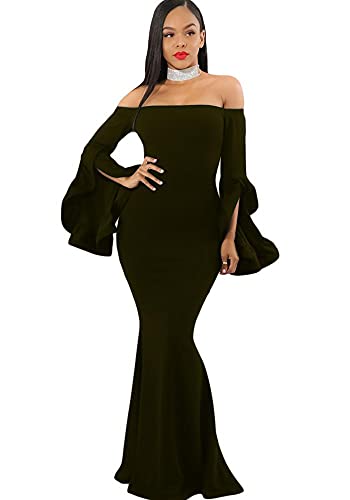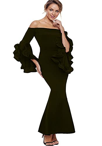 FG - فستان ماكسى - مناسبه خاصة - قصه مستقيمة - لون اخضر جيشي- نساء