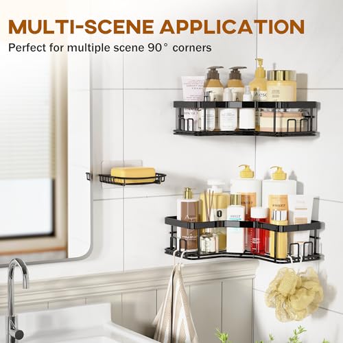 MAXIFFE - رفوف زاوية الدش مع حامل صابون بسعة كبيرة، متينة، سهلة التركيب بدون حفر، مصنوعة من الفولاذ المقاوم للصدأ، وزن يصل إلى 18 كجم، منظم دش، أرفف تخزين، مناسب للعائلات والمستأجرين من ماكسفي، أسود