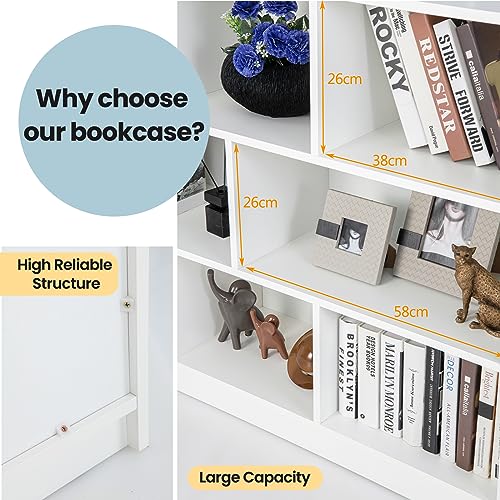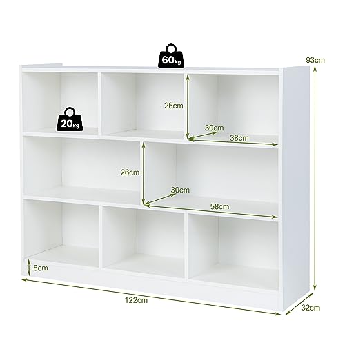 Maxmass - خزانة كتب للاطفال من 3 طبقات من ماكسماس، رف خشبي لعرض كتب الاطفال مع 8 مكعبات ووسادات قدم مضادة للانزلاق، منظم تخزين العاب الاطفال لغرفة المعيشة وغرفة نوم الاطفال وغرفة اللعب والمكتب المنزلي (ابيض)