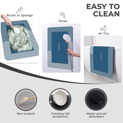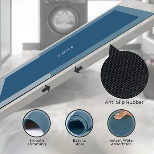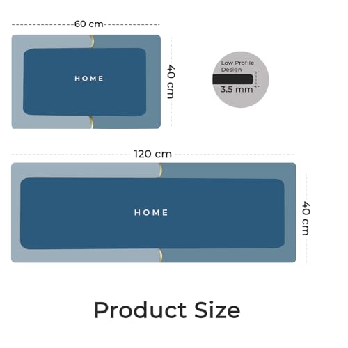 - مواصفات مفرش المطبخ: الحجم: 1.20 م × 40 سم، القطع: 2، اللون: أزرق، المادة: طباعة مطاطية: HOME، سُمك القطعة: 3.5 ملم