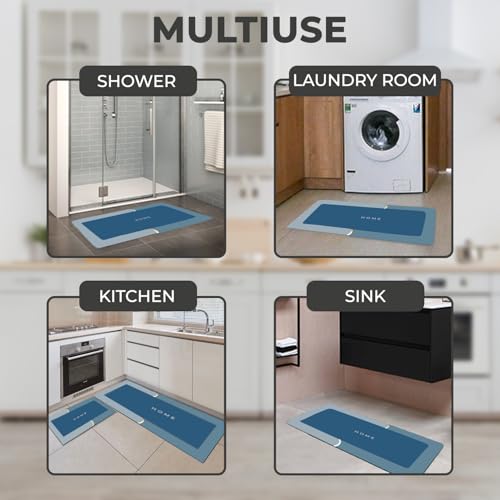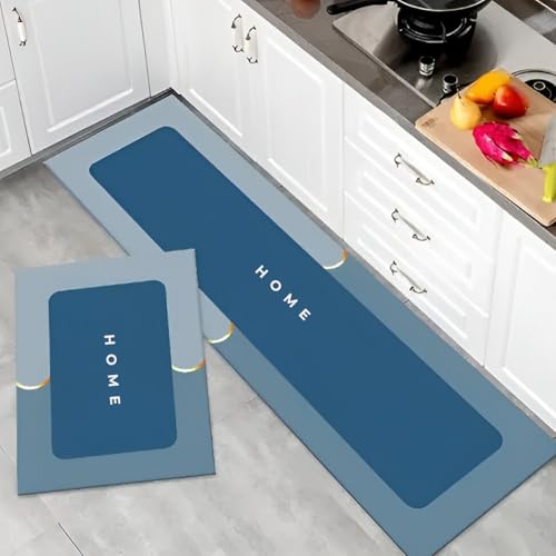 MAXOSHINE - طقم سجاد مطبخ من ماكسوشاين، سجاد أرضية مضاد للانزلاق ومقاوم للماء ومريح، مثالي للمطبخ والمكتب، طقم من قطعتين، لون أزرق
