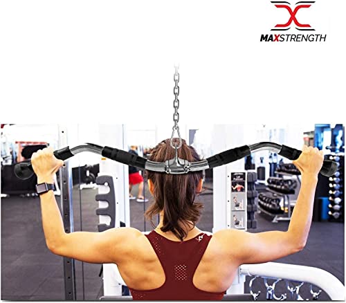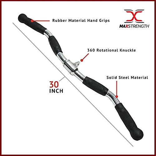 MAXSTRENGTH - ملحق كيبل ماكينة باربيل اكس ماكس سترينث بمقبض دوار غير قابل للانزلاق ومقبض احترافي قابل للسحب لاسفل، سبيكة صلب، فضي