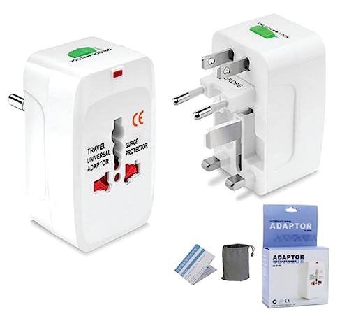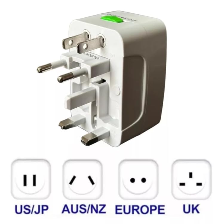 MAXZIQF - محول فيشة عالمي قياسي دولي مناسب لأكثر من 150 دولة بجهد 110-220 فولت ثنائي الفولت للسفر للولايات المتحدة وأوروبا وآسيا والمملكة والبرازيل والأرجنتين شبكة ايزي ايديا ماكسزيكف أبيض
