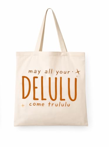 Generic - حقيبة قماشية بطبعة May All Your Delulu Come Trululu، حقيبة تسوق قطنية بتصميم نصوص، حقيبة كتف قابلة لإعادة الاستخدام