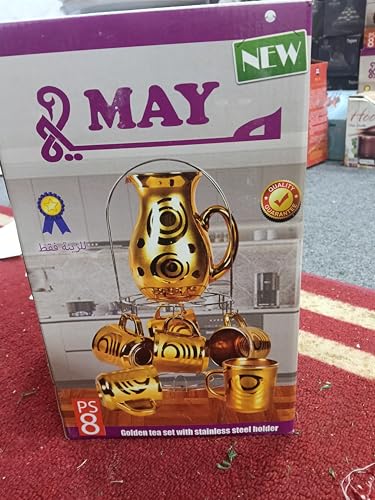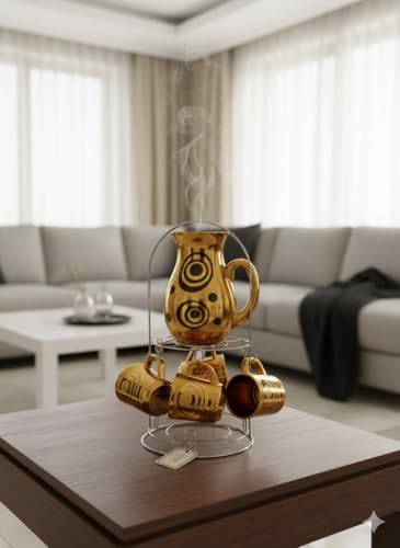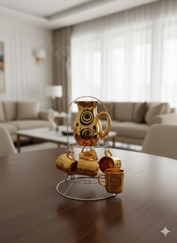 - جودة ومتانة عالية: الحامل المعدني قوي ومستقر والأكواب مصممة للاستخدام طويل الأمد مع الحفاظ على بريق الطلاء الذهبي الجذاب