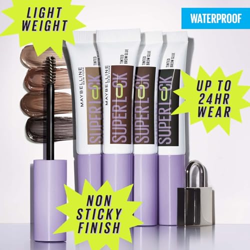 MAYBELLINE - مايبيلين جل حواجب من نيويورك، للحواجب المحددة، ثبات قوي بدون تشققات او لاصق، فرشاة تصفيف مدمجة، صمغ حواجب سوبر لوك، بني داكن، 8 غرام